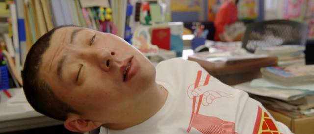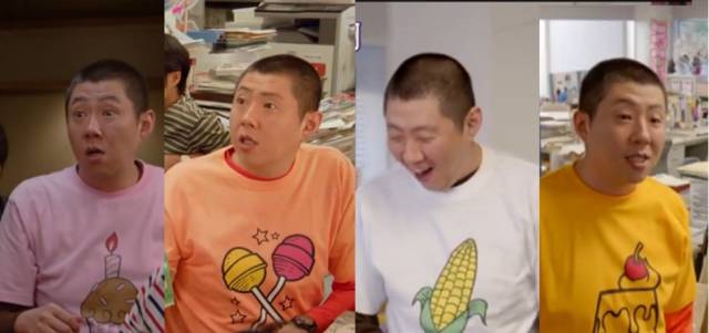 另外再分享剧中另一个很有特点的角色,他是搞笑漫画的编辑,资深动漫宅,爱吃爱漫画,整部剧所有出场,身上的美食T恤从来不重样,简直是个燃烧着“吃货”魂的有毒boy。