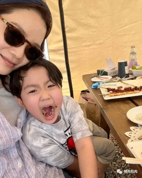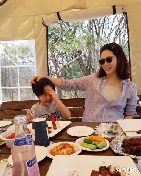 4月11日,蔡琳带着儿子去郊外野餐,她身着条纹的衬衫,戴着墨镜,笑容特别的灿烂,跟儿子吃饭的时候,不停地摸儿子的头,儿子开心不已。桌子上还有不少美食,有烤串,还有黄瓜,萝卜,以及辣白菜,非常的丰富。