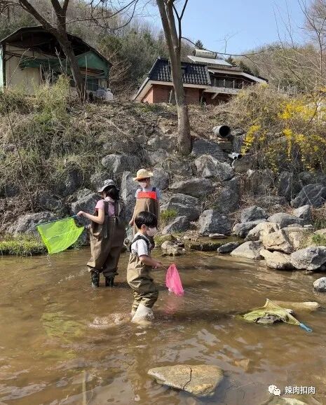 除了享受美食之外,民宇还下水捕鱼,他拿着捕鱼网,穿着捕鱼服非常专注地在水里捞来捞去,完全不像是4岁的孩子,个子也比之前在综艺节目中要高很多了。