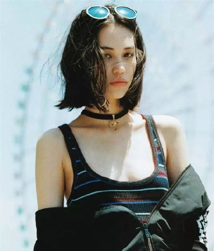 像水原希子这样,不用太刻意卷,最好有点垂坠感,长度刚好超过下巴一点点的lob头,搭配一些夸张的金属感耳环或项链,或者搭配choker,辨识度就像坐上了直升机一样。