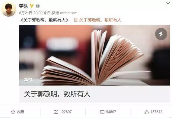 昨晚微博上一名叫李枫的作家,以性骚扰罪名征讨郭敬明,事件真假尚未定论。