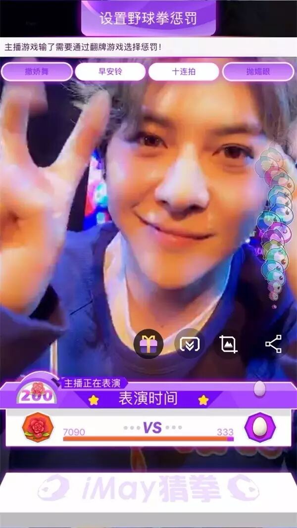 另外,在随后的iMay直播内置APP游戏“野球拳”环节中,不停发放给线上粉丝的福利,因为有生日幸运加持的乔叔几乎百战百胜,为了给观众尽可能的带来福利——“撒娇舞”