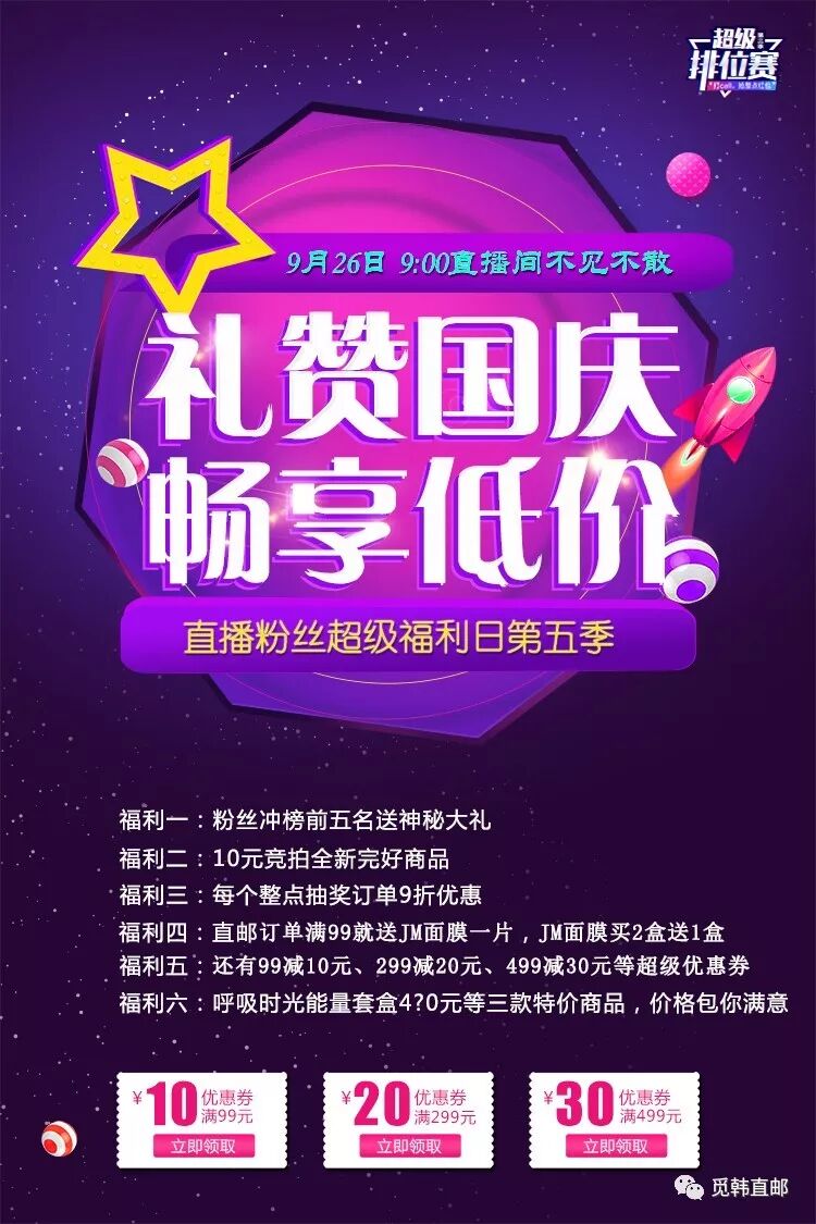 PS:9月26日9:00 韩香小店 第五季直播粉丝超级福利日,直播间等你来哦~