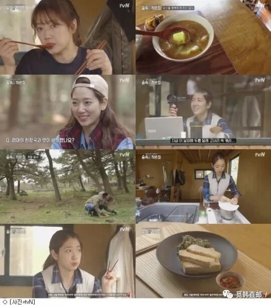 如此爱情事业双丰收的朴信惠还出演了韩国知名的金牌综艺制作人罗英锡的《林中小屋》,她在里面自己做饭、制木架、一个人自得其乐,即便与世隔绝也积极的做着自己的事情。