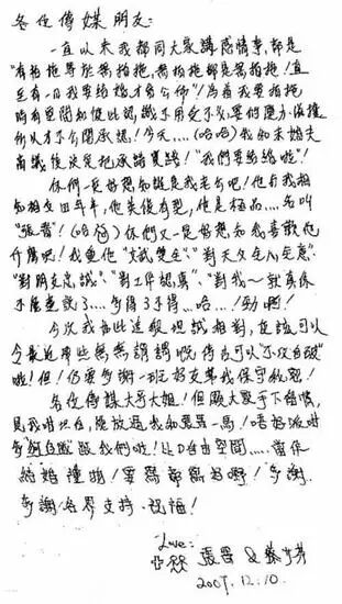 可见当时他两在一起有多艰难,幸亏他们俩都没有放弃,在2008年宣布结婚时,公布结婚的信还是蔡少芬亲笔手写的,这对于娱乐前的女明星而言是绝无仅有的。