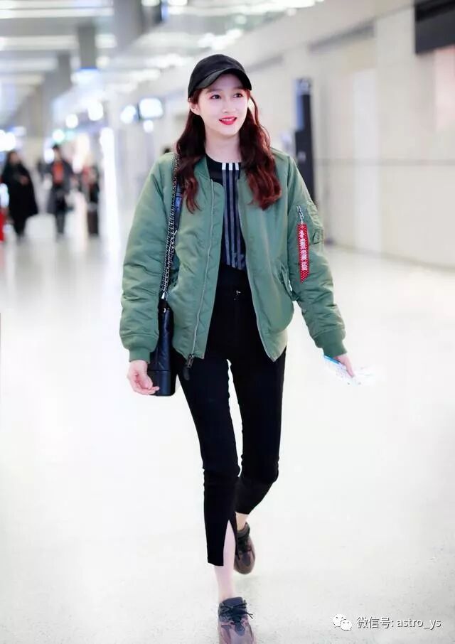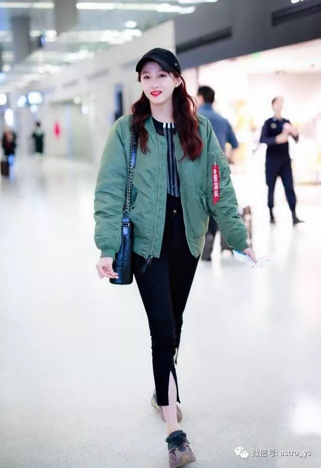 11月25日,关晓彤出现在机场,绿色飞行夹克搭配着黑色紧身九分裤,一套酷酷的美美的穿搭出来了。这一套穿搭看起来也是青春活力十足,晓彤也变得俏皮明媚许多。而这一次的卷发和之前的有所不同,非常时髦的一款发型,也显得关晓彤更灵动俏皮了。