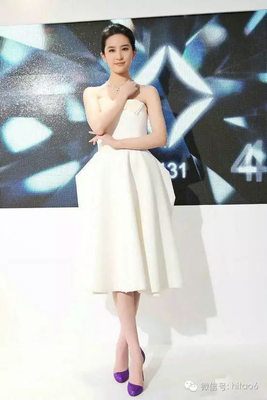 抹胸小白裙性感优雅,脚踩紫色的鞋子,气场十足!