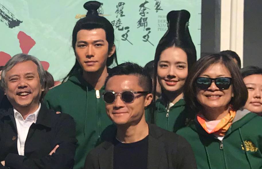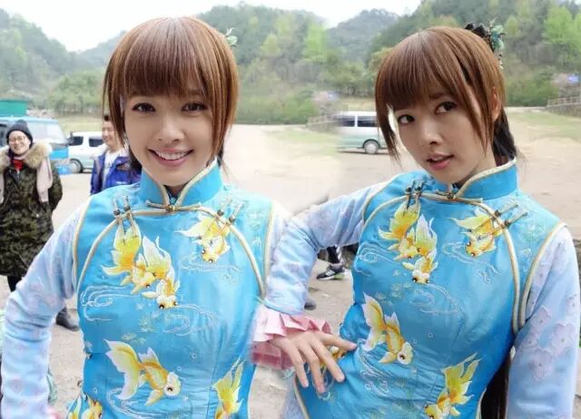 在片场,关晓彤不停的歪着脑袋活动脖子,果然巨型发饰很重啊~