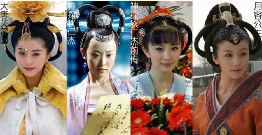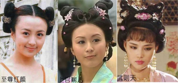 电视剧中,也有不少还原古装发型的。比如唐代发型必备,头上两个圈圈。