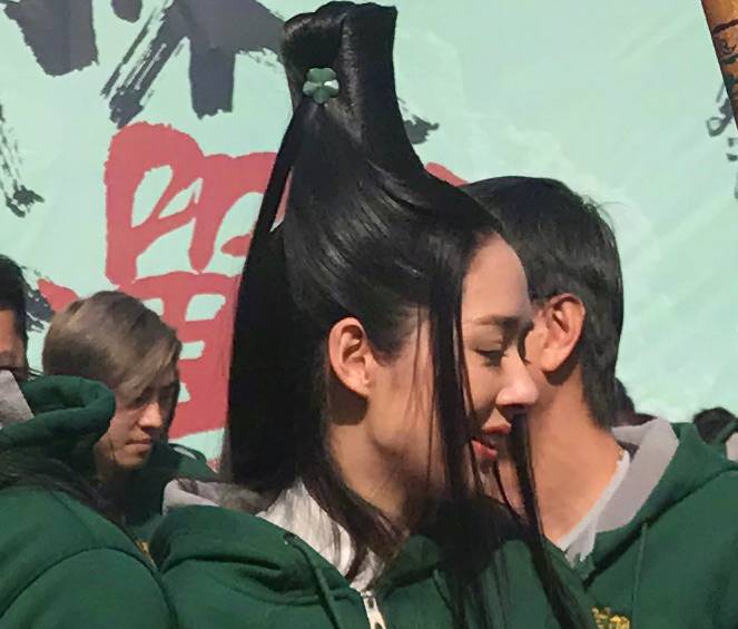 沈梦辰的发髻顶端的形状则酷似便便,这让沈梦辰哭笑不得。