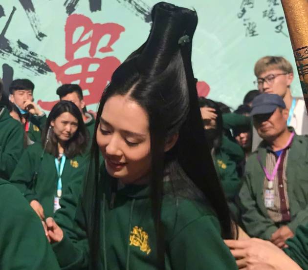 郭碧婷绝对是黑直长发型的最美代表,不过最近的古装剧造型一出现,一下子就抓住了群众们的眼球。郭碧婷头顶花瓶般的发型,不少网友称:这是观音菩萨落入凡间的净瓶?