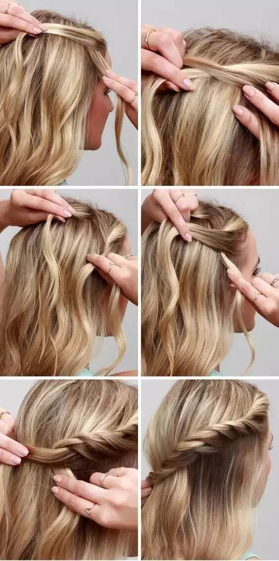 侧面编织法式辫:取出两股头发后交叉,再取出一股新头发,叠加在交叉后的上层头发上,与下层的头发重合,以此类推向后编织,编织出清晰可见的纹理,并先用小皮筋固定。