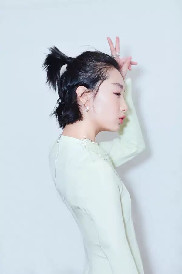 艺昕本就甜美,换上好看的“苹果头”更是阳光俏丽。