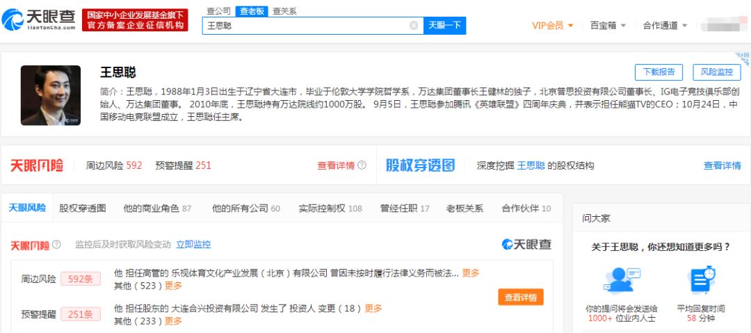 按照4亿算,王思聪这部分股权价值 3亿人民币。