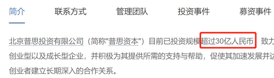 据投资界给普思资本的简介,目前普思资本的投资规模超过30亿人民币。