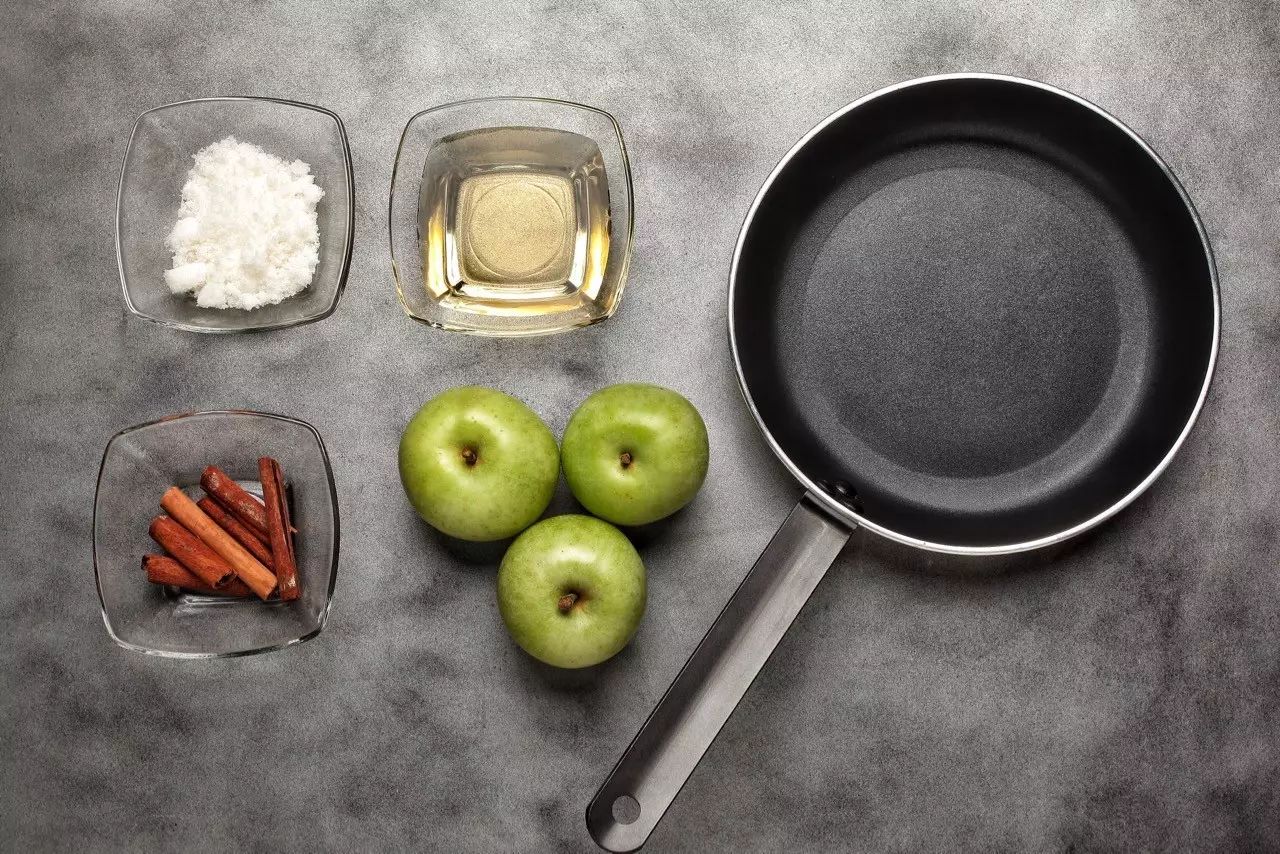 另取3个苹果去皮切块;取一锅,放20g白糖熬至变色,放入苹果炒至上色,倒入150ml苹果汁,放入1根桂皮,煮开后转小火炖煮30分钟。