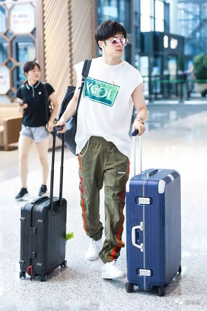 跟老公交谈完以后,颖儿突然走开,可能是去忙于别的事情。这下可苦了付辛博,他把“累活”全部包揽在了自己身上。两个行李箱拿在手中应该不轻松吧?