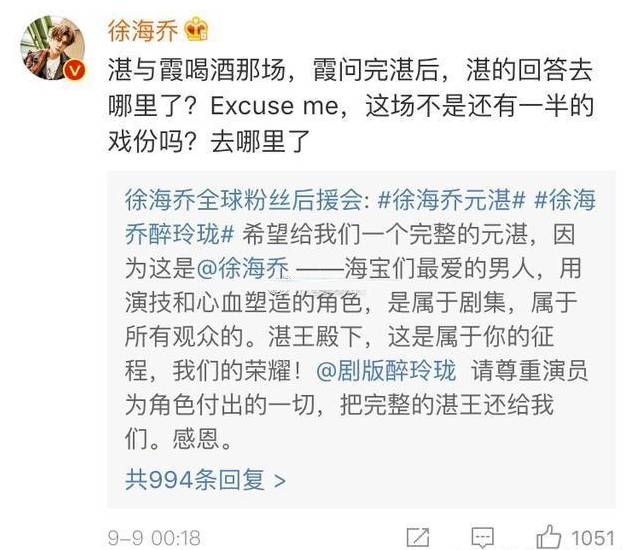 然而,近日《醉玲珑》的演员之一徐海乔却怒怼《醉玲珑》剧组,称自己的角色被改词,而且还有戏份遭到删减: