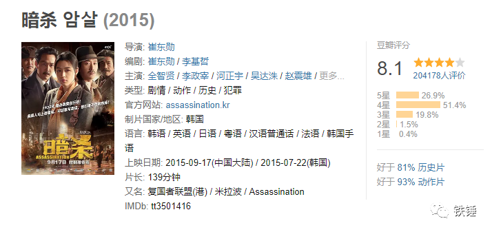 7月22号 暗杀在韩国上映。占据了各大影院各时间段。电影环环相扣,配合笑点把握节奏,全程惊险刺激,2小时的电影完全不疲倦。