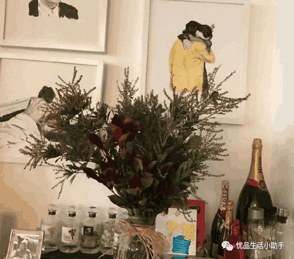 用线条勾勒出的白色墙面会让人感觉更加的有立体感和层次感,在这上也是用了很多的艺术照进行的装饰来增加空间的美感,柜子上也是用着鲜花和红酒进行的点缀和布局,让整体的装修拥有着另类的美,跟很多中国人选择的装修方式都是不一样,却会把自己的个性给更好的张扬出来。