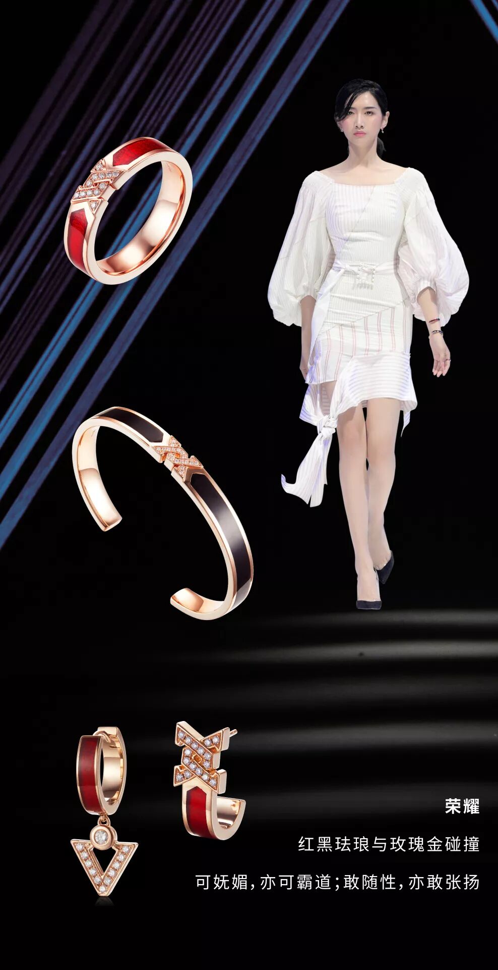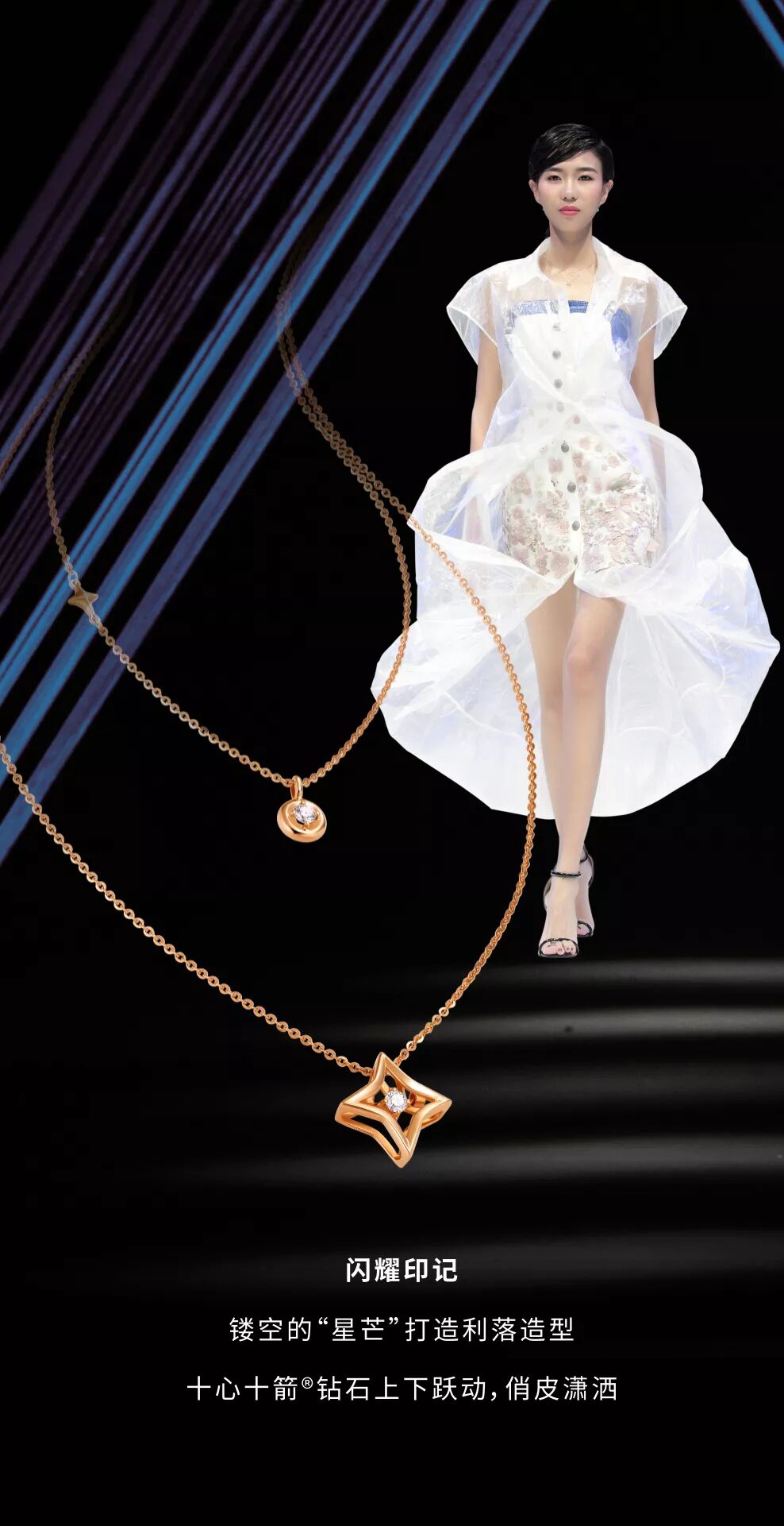 灯影光线下的模特身影交错重叠,