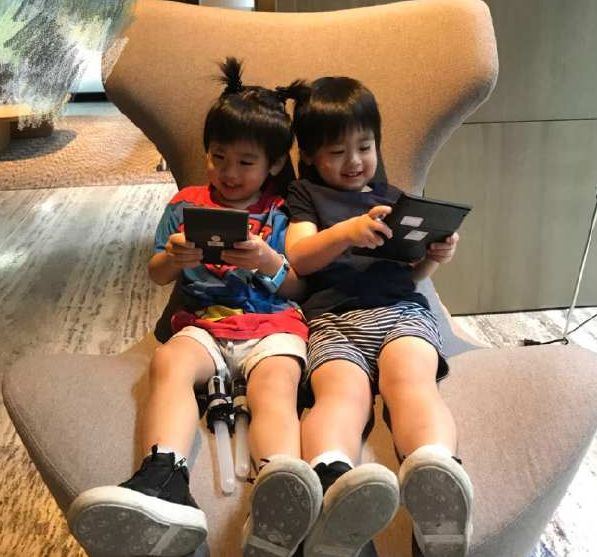 现在林志英的双胞胎已经2岁多了。自从加了两个小家伙,林志英在网上跟大家分享了两个小家