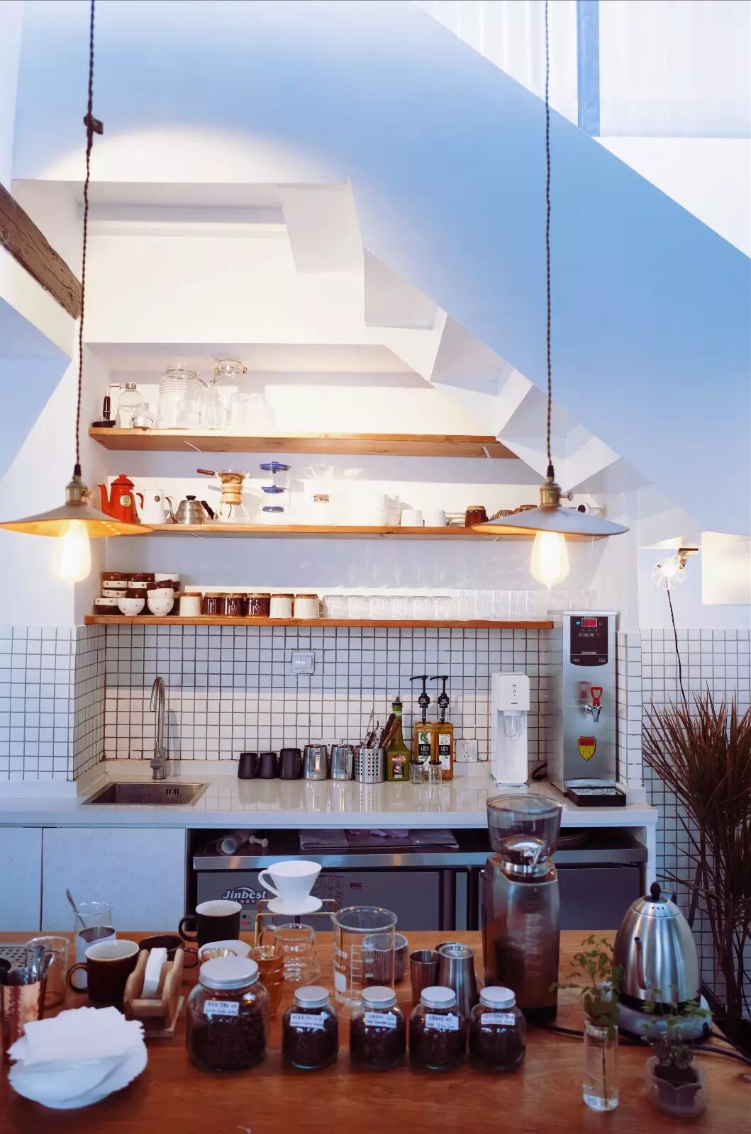 实际使用面积在45平方米的小小咖啡馆,在空间利用和美观度的结合上主理人和设计师也是用尽了心思。