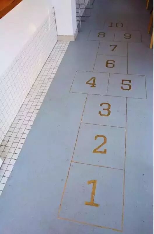 ▲一进门,就会被清水泥上的铜字吸引,“跳房子”是80小时侯都玩过的游戏,希望地上的跳房子,可以帮助我们回到童年,重新找回童真,1到10的数字,代表了这酸甜苦辣都有的10年。