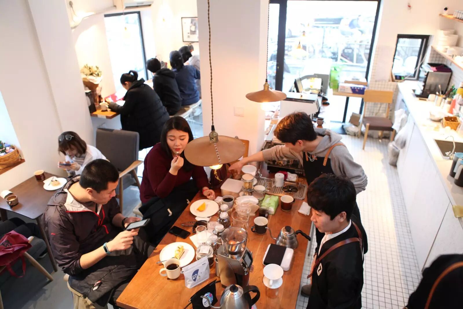 ▲ 设计师 Luffy:临窗的吧台对着窗户,可以关照街景,背对着收银购物的位置,不会互相干扰,长桌子的尺寸又很适合办公。