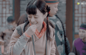 比如像下面这个镜头里,她与境州共同执伞,有一闪而过的笑,但是立马又因为意识到不合礼数,迅速收住了。