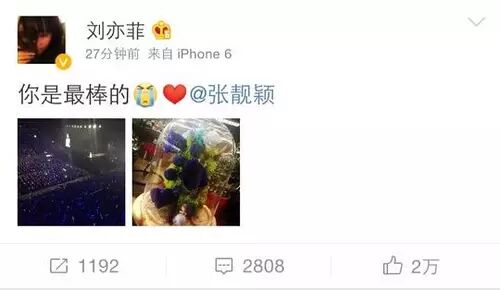 大概是共同语言的驱使吧,两人一直保持着联系。刘亦菲在张靓颖被黑的最惨的时候站出来力挺她,参加她的北京演唱并为她打气,张靓颖也在刘亦菲公布恋情的时候送上祝福,微博互动很是频繁。
