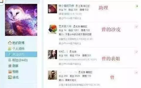 两人还专门为对方注册了微博小号,刘亦菲的微博小号第一个关注的就是曾轶可的小号,而且刘亦菲的微博小号名字就是曾轶可歌名——《babasister》,当然,曾轶可也是第一时间关注了刘亦菲,颇有小女生情怀。