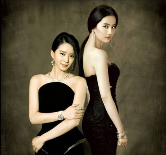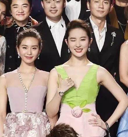 这个可以理解,刘诗诗出道就被冠以小刘亦菲的头衔,同框一直是外界的YY。PS:后面三位男士破坏了整张图的意境。