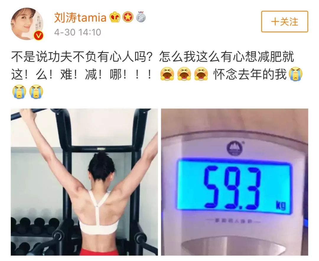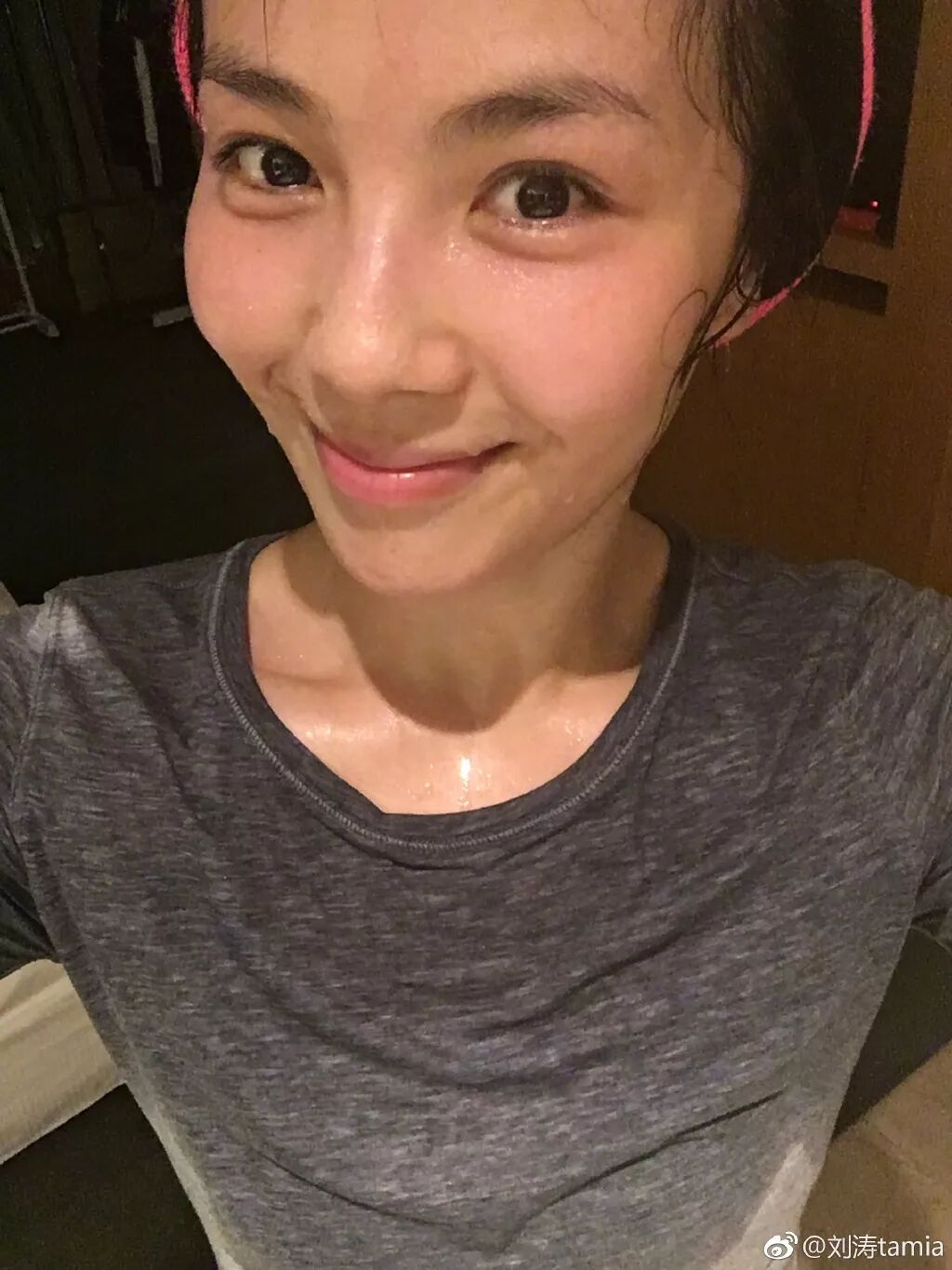 在微博上她毫不吝啬的分享自己建身后毫无装饰的样子