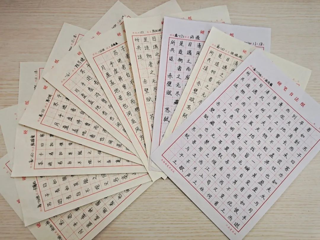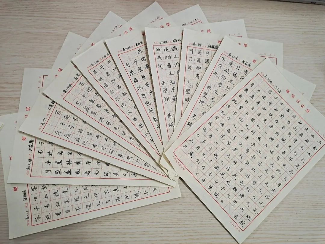 本次比赛书写内容为《赤壁赋》第四段(参见语文书119页),比赛要求:开头空两格,去掉标点书写,注明出处,姓名、班级统一写上面。书写稿纸由年级统一提供,学生需自备黑色水笔或钢笔。