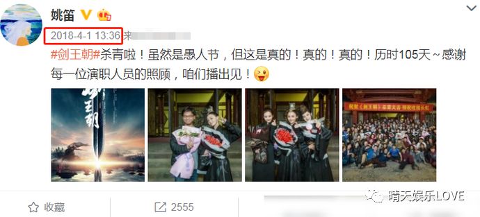 从姚笛的微博上看,在“剑王朝”杀青之后,姚笛就进入了“剧荒期”,V博上2018年6月份更新了3条,2018年9月份才更新了1条。