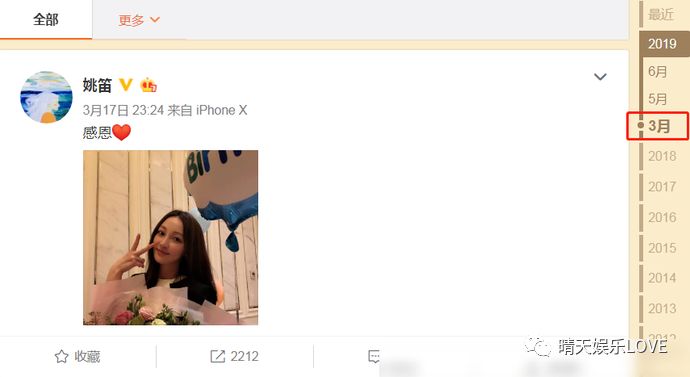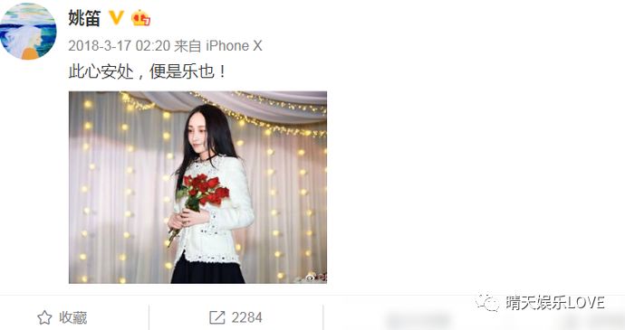 随后姚笛的社交平台就一直陷入“沉默”当中,这个过程一直持续到2019年3月份,姚笛的生日的时候,她才突然冒泡更新了一则“感恩”的动态。