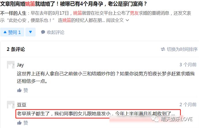 然而除了以上两条消息外,还有另外一条消息传的也很广,那就是在文章和马伊琍刚刚宣布离婚之后,有人爆料姚笛早结婚了,甚至连“孩子都生了”。