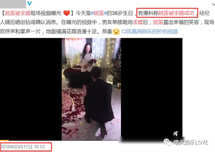 姚笛是在2018年的36岁生日被男友求婚成功的,按照一般逻辑求婚成功后就离结婚不远了,如果抓紧时间领证的话,估计也用不上几个月的时间。
