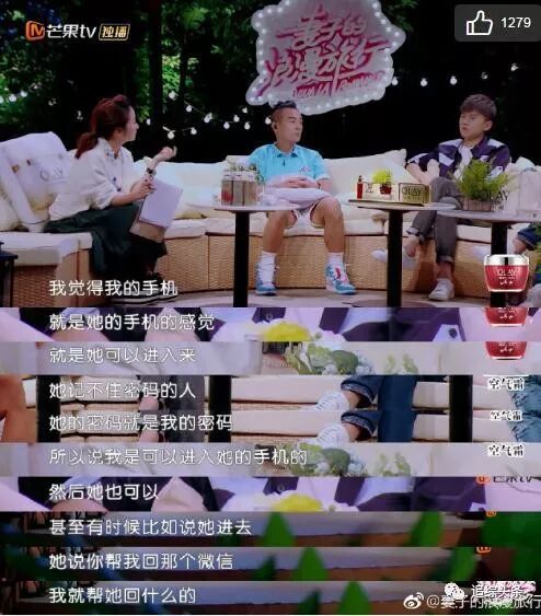 关于该不该看伴侣手机的这个世纪性难题,张杰说自己的手机就是谢娜的手机,互相看完全没问题,甚至有时候还能互相帮着回微信。