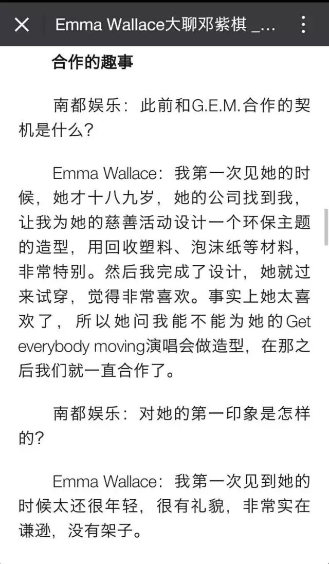 邓紫棋一直以来合作的造型师是来自英国Emma Wallace,两人合作时间可以追溯到邓紫棋出道时。