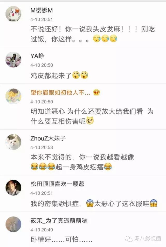 围观群众情绪相当不稳定,头皮发麻、鸡皮疙瘩、密集恐惧什么的,
