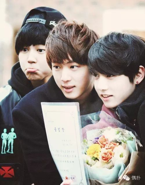 (防爆少年团其他成员前来他的高中毕业典礼道贺)