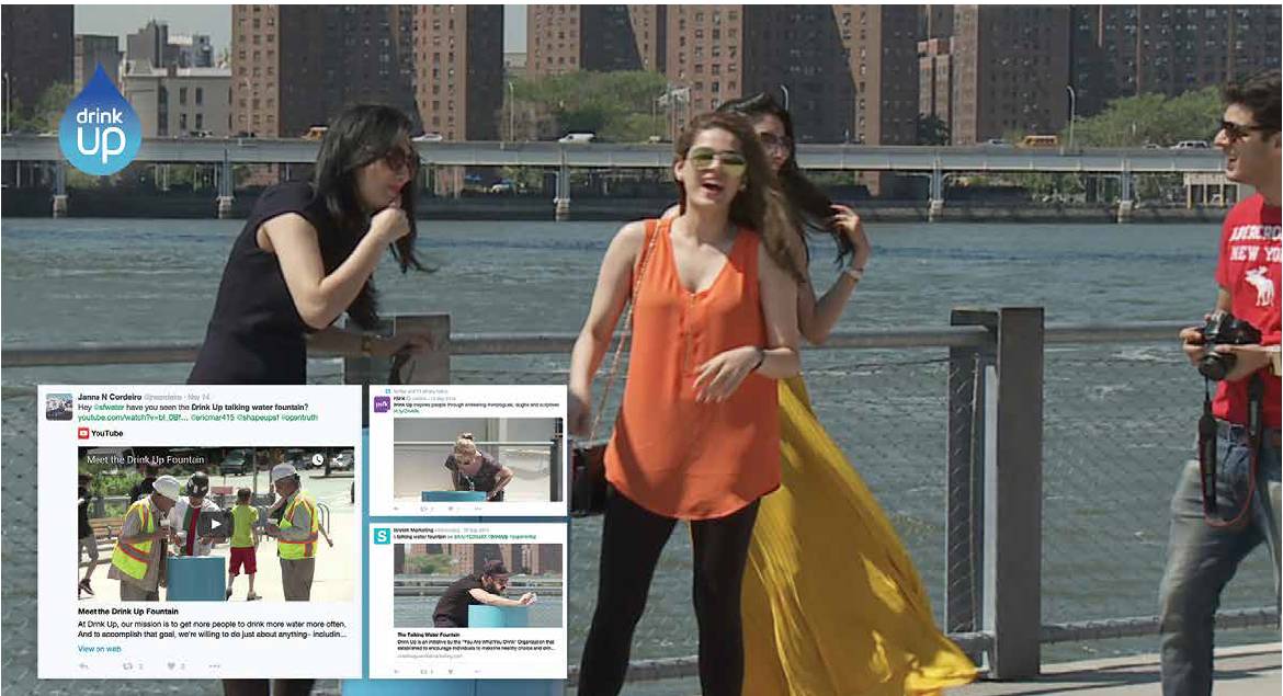 广告还可以因时机而异。2014年,VML和Y&R Advertising利用Hydro-touch技术为Partnershipfor a Healthier America打造了Drink Up饮水器项目,当人们在饮水器旁饮水时,电路就会接通并触发一段音频消息来提醒人们水的好处,鼓励他们多喝水。此次活动引起了媒体的广泛关注,并使得瓶装水的销售额增加了3%。