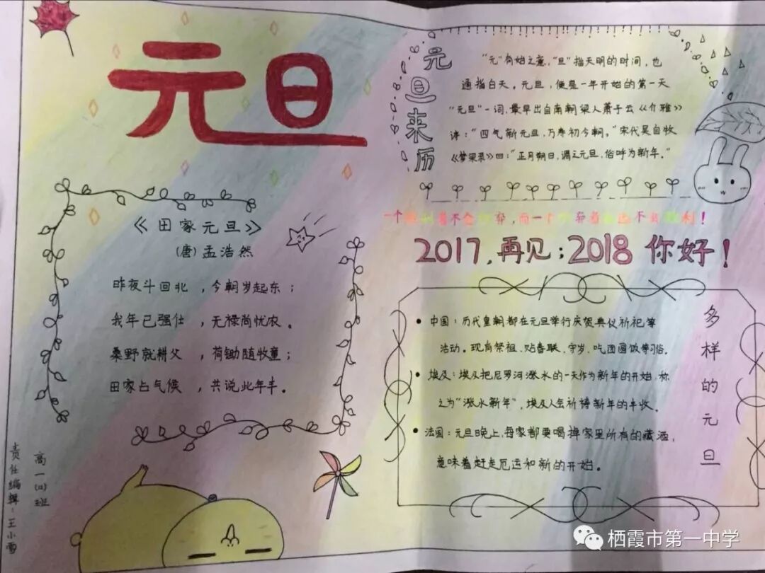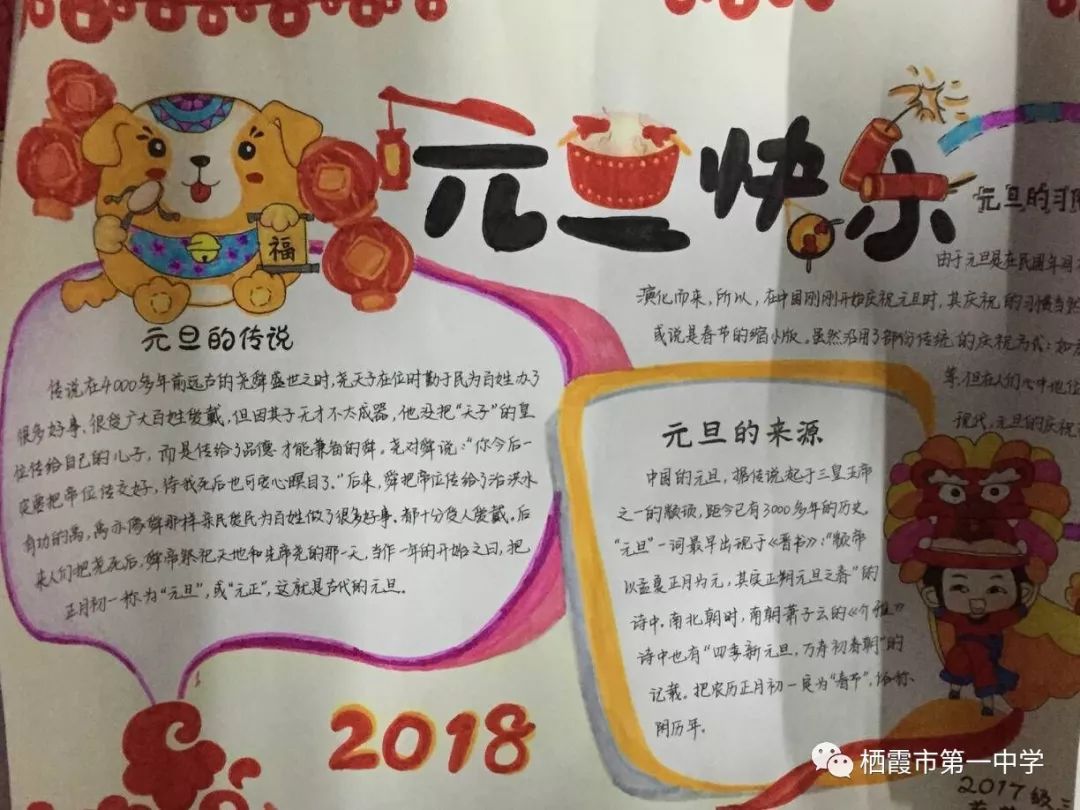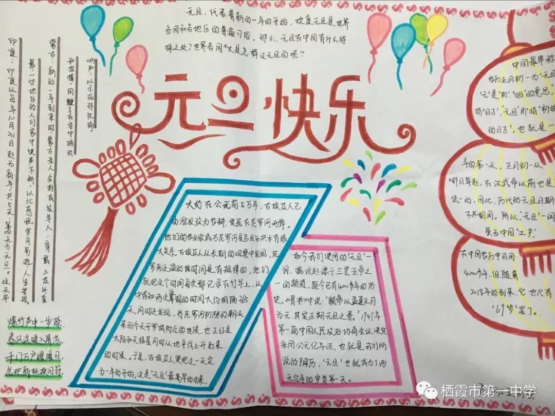 2018年元旦来临之际,为了彰显节日气氛,丰富校园生活,使同学们的业余生活更加绚丽多彩,栖霞一中特举办以“庆元旦,舞青春”为主题的班级手抄报比赛。