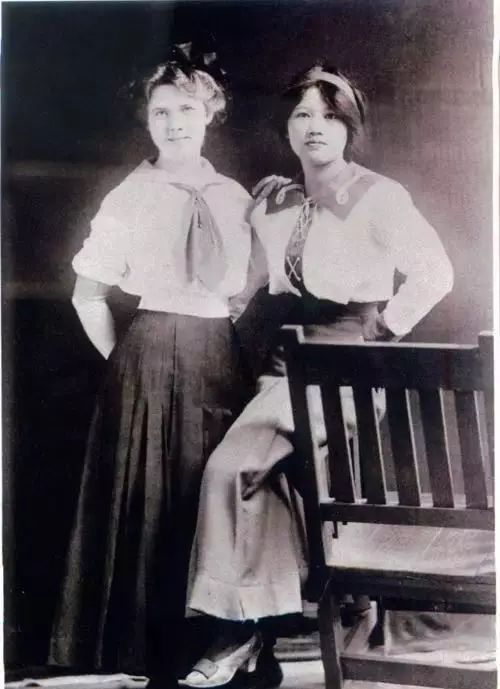宋庆龄15岁时便同妹妹宋美龄赴美国留学,那时候的她非常喜欢西式的着装风格。因为在教会学校念书,后来又留学美国,在她的青春岁月里都是穿着西式的服装。