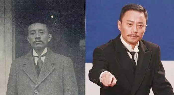 左边为宋教仁,被称为中国“宪政之父”,地位齐同孙中山、黄兴。1913年在上海被暗杀,只活了31岁。右边张涵予眉宇之中与宋教仁很相像,在《建党伟业》里演的就是宋教仁。
