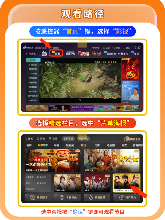 观影路径:按遥控器“首页”键-影视专区-短剧嗨看