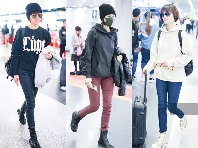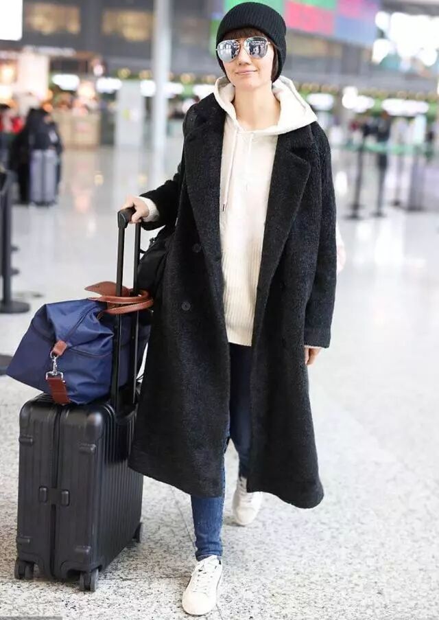 流行的泰迪熊外套,其实也是袁泉曾经穿过的款式,不过她选择的是很显质感的黑色泰迪熊外套。内搭浅色连帽卫衣。减龄不俗气,就是这样轻松走机场,这样的单品穿十年也不会过时吧!其实不用抱怨我们不能每天穿新衣,能把自己手上的衣服穿出自己的时髦效果,就已经很不错了。