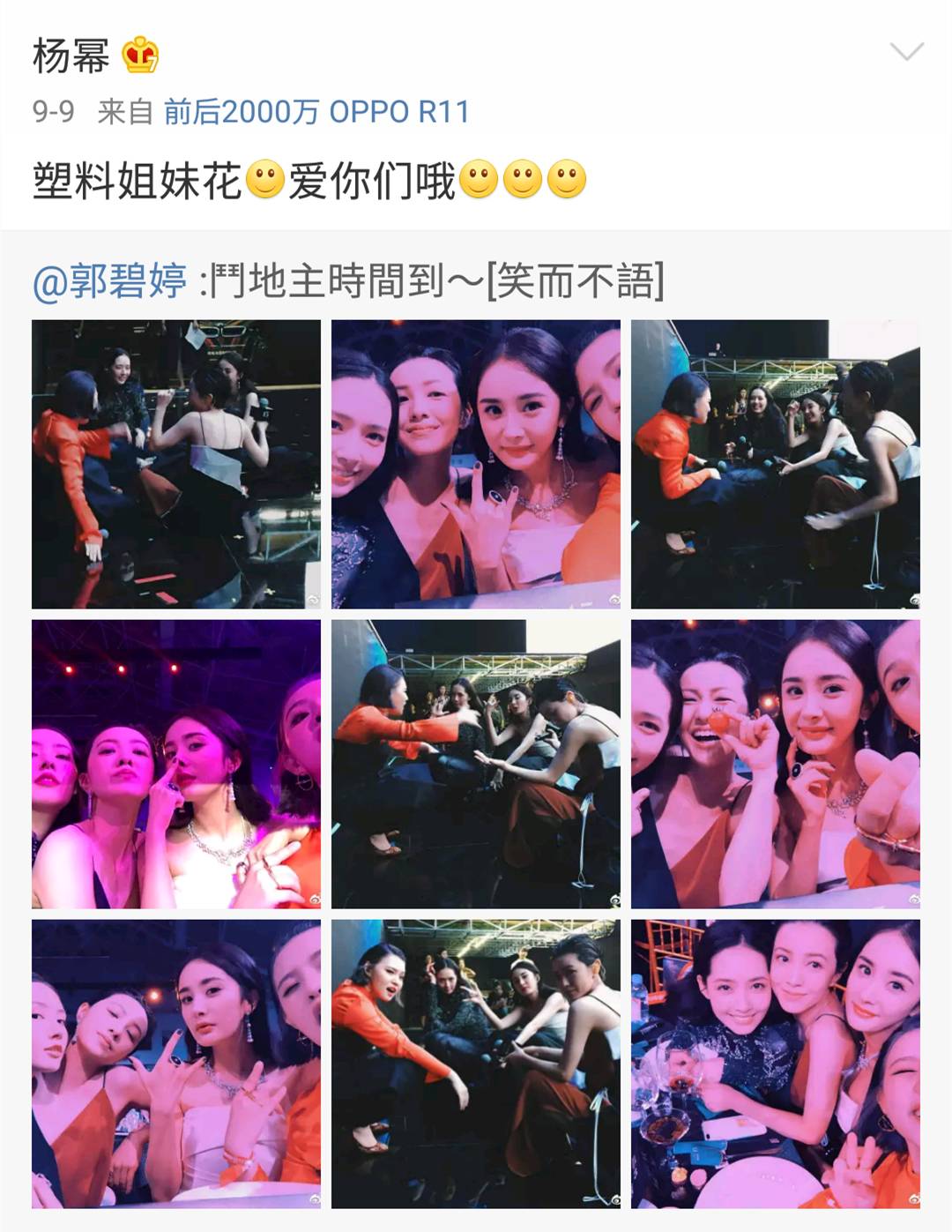 大幂幂不改自黑的风格,发微博打趣四人是塑料姐妹花。